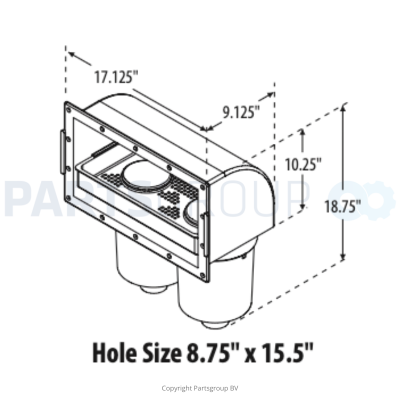 100 vierkante voet skimfilter met toegang aan de voorkant, grijs ovaal